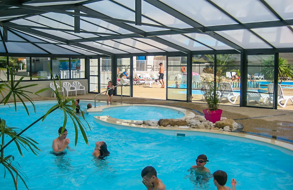 Profitez des joies d’un camping Carnac avec piscine en réservant au Pen Palud pour vos prochaines vacances ! D’avril à septembre, notre camping en bord de mer vous garantit de pouvoir vous baigner grâce à son espace aquatique avec piscine couverte.